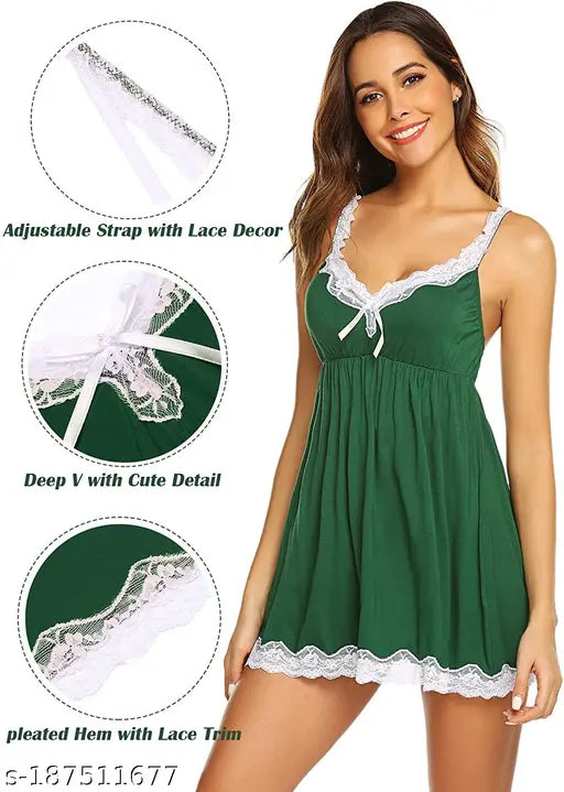 HiloRill Women's Lycra & Lace Solid Above Knee